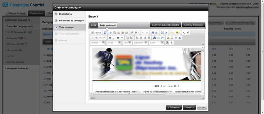 Mise en page du message à partir d'un de nos nombreux gabarits gratuits, ou à partir de votre propre modèle HTML.